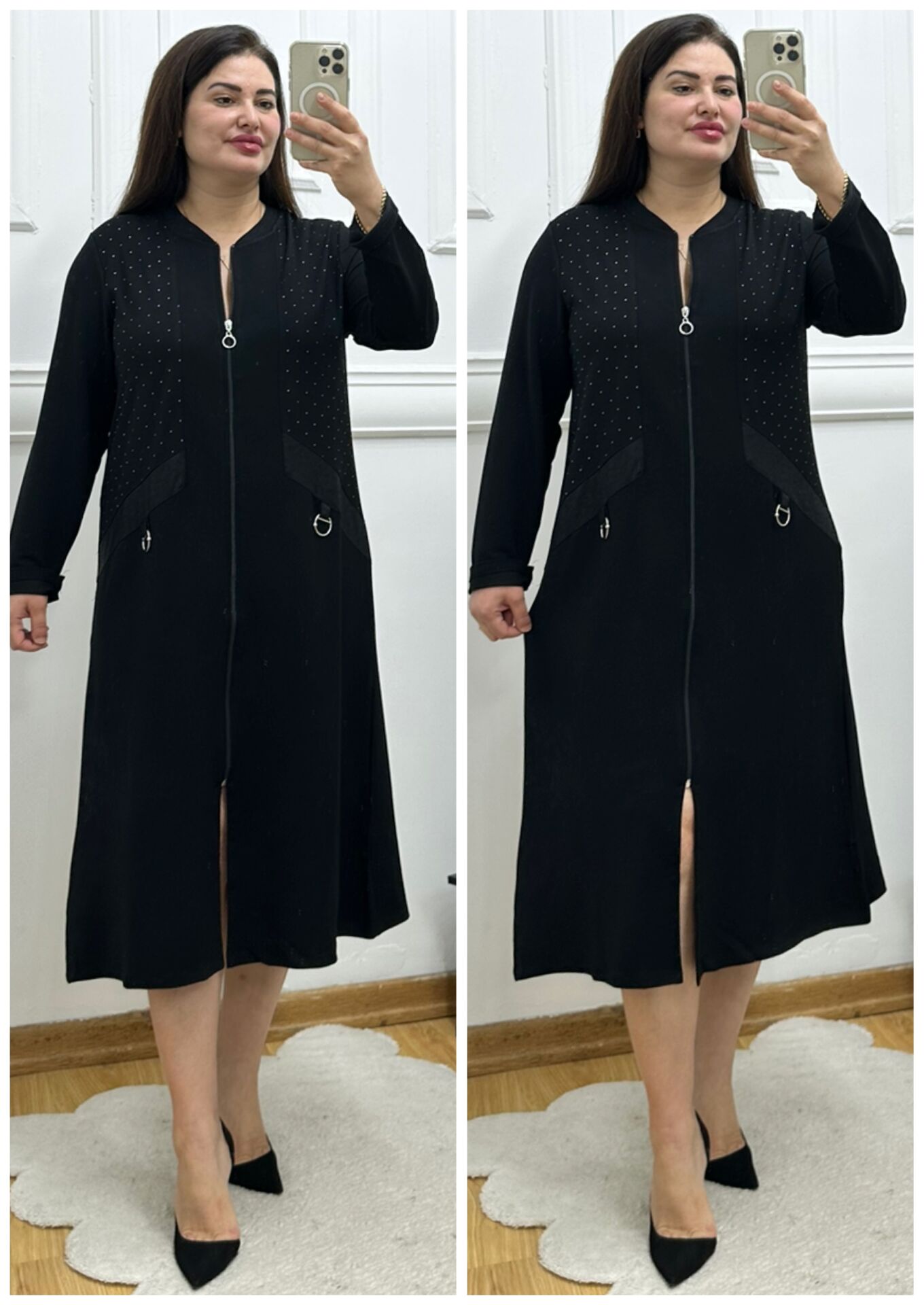 FT057-Kristal kumaş fermuarlı gömme taş detaylı elbise