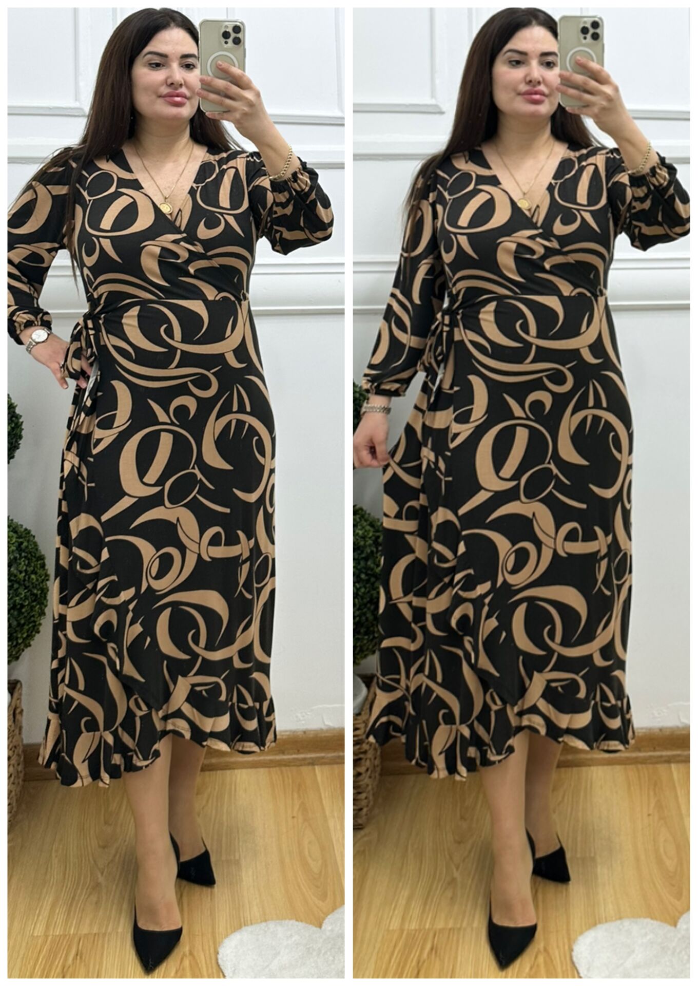 N104-Siyah taba desen anvalop elbise