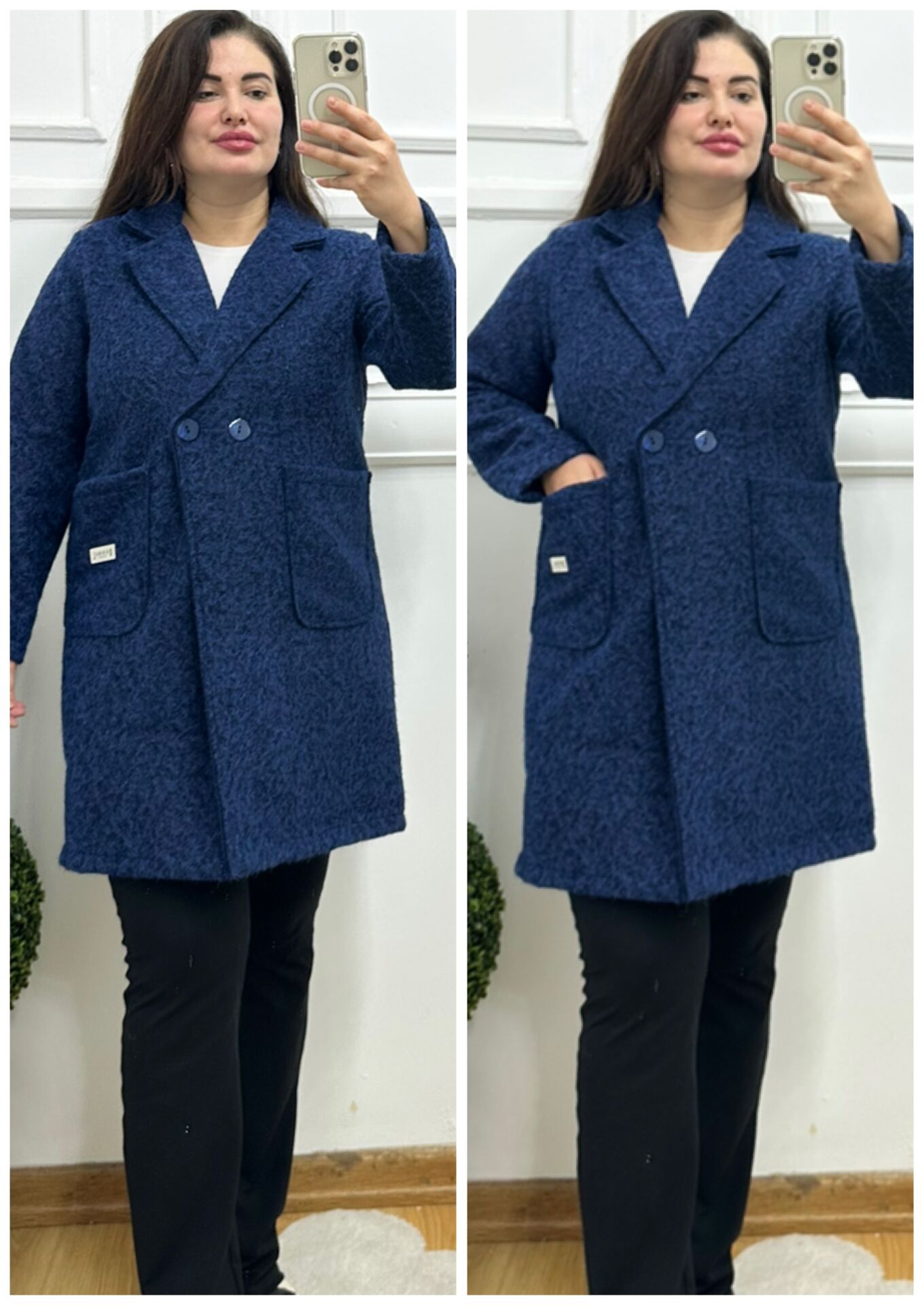 OG006-Lacivert kırçıllı kaban