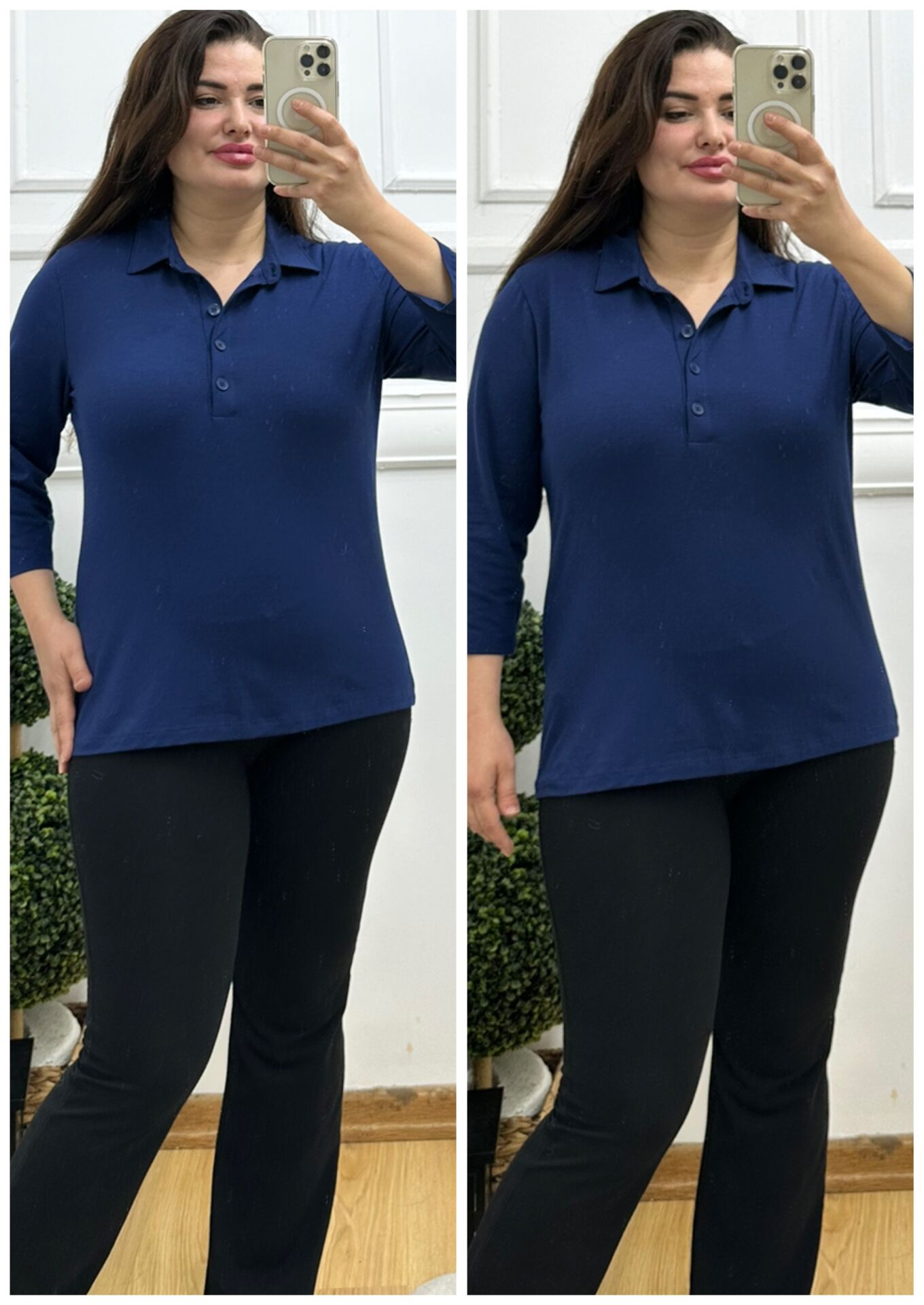 SF046-Lacivert gömlek yaka bluz
