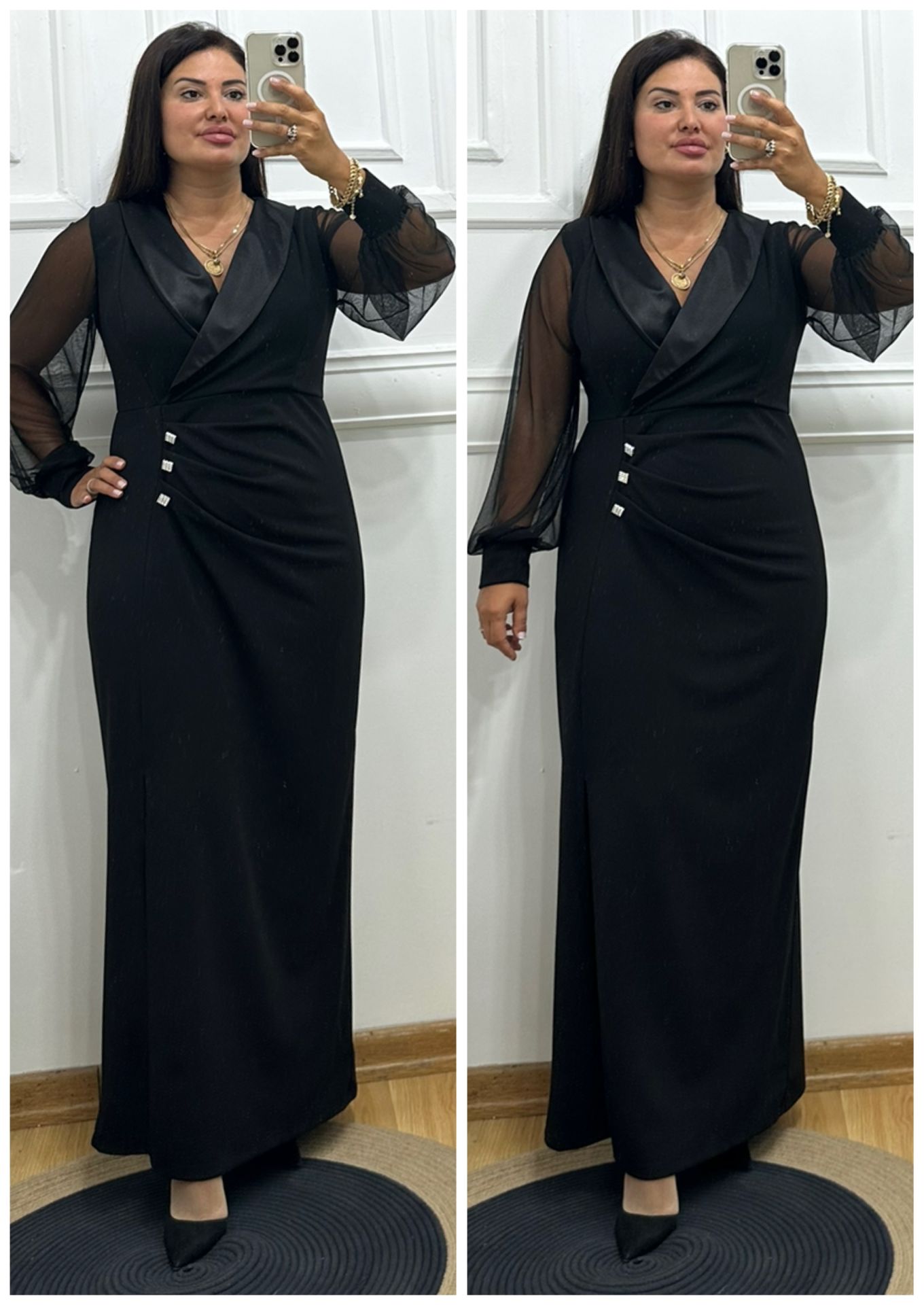 TR022-Siyah saten yaka maksiboy balık abiye