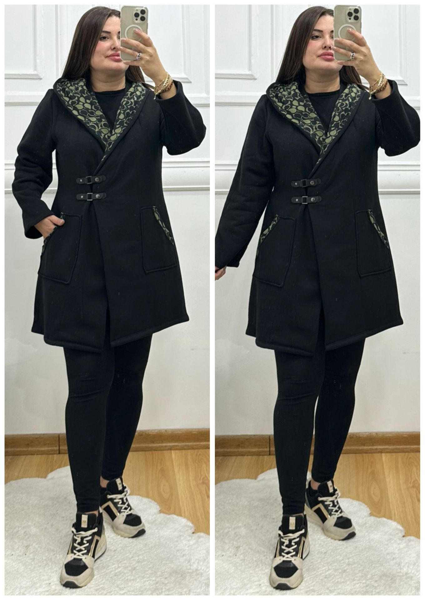 TR039-Haki yeşilli desen içi jardonlu kaban