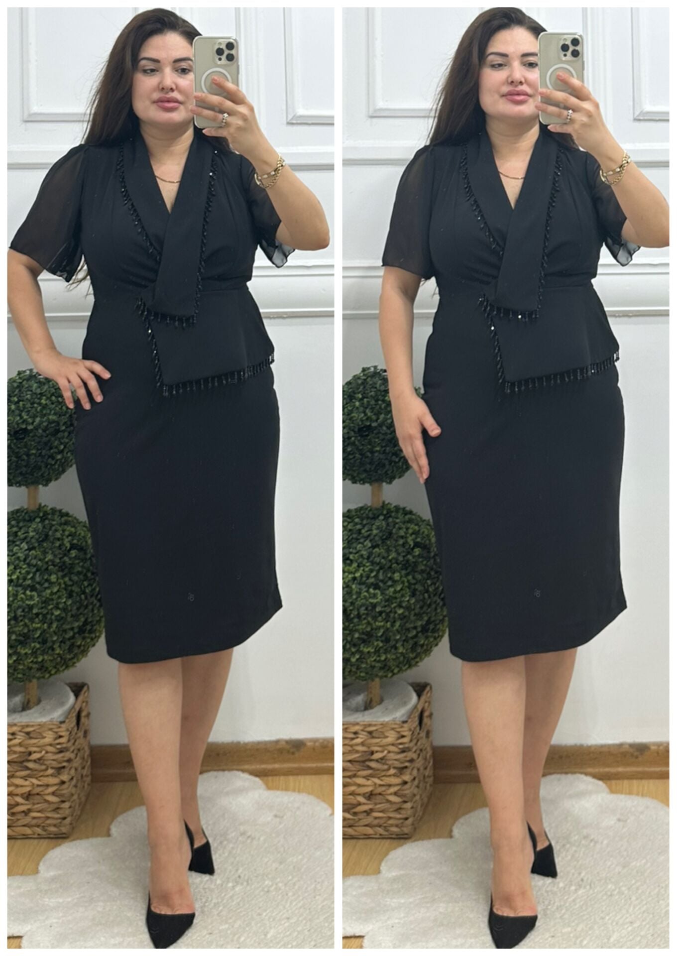- Mankenin üzerindeki beden; 38 / Medium (Dikkat Manken şuan hamiledir ve üzerine 42 beden giymiştir)