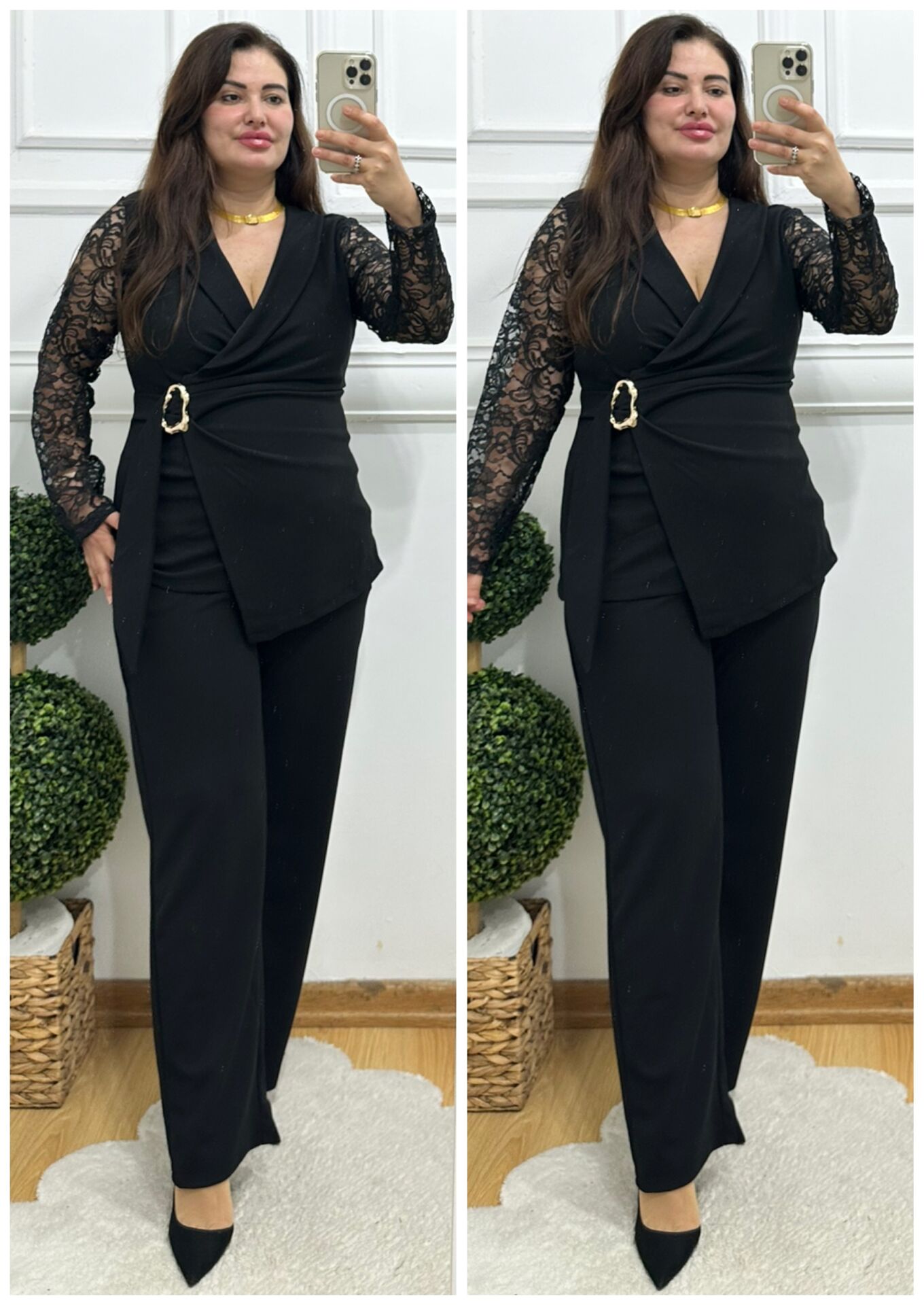 TR147-Siyah kolu güpür beli tokalı ikili takım