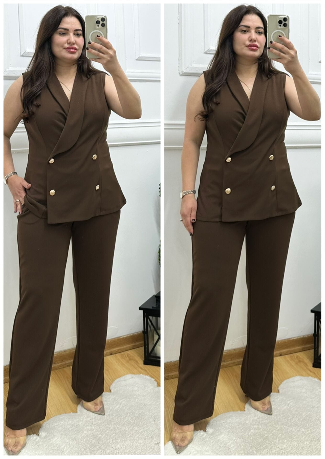TR168-Kahve ceket ikili takım