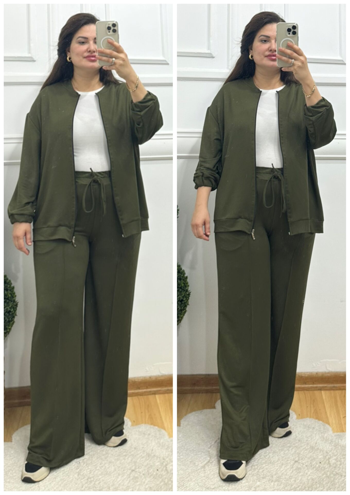 VL112-Haki oshyo kumaş fermuarlı eşofman takım