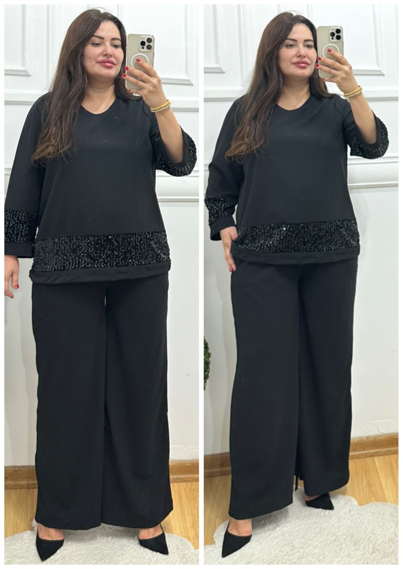VL117-Siyah siyah pul Payet detaylı ikili takım
