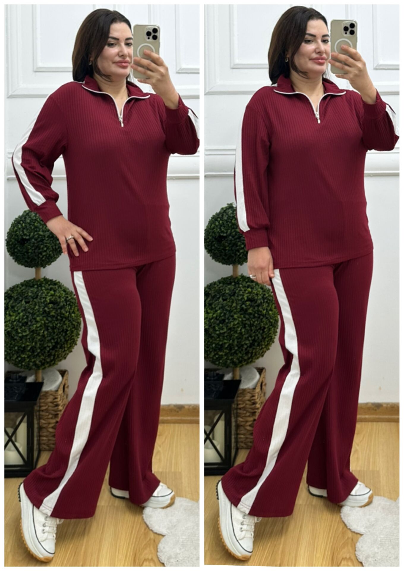 VL128-Bordo beyaz çizgili ikili takım
