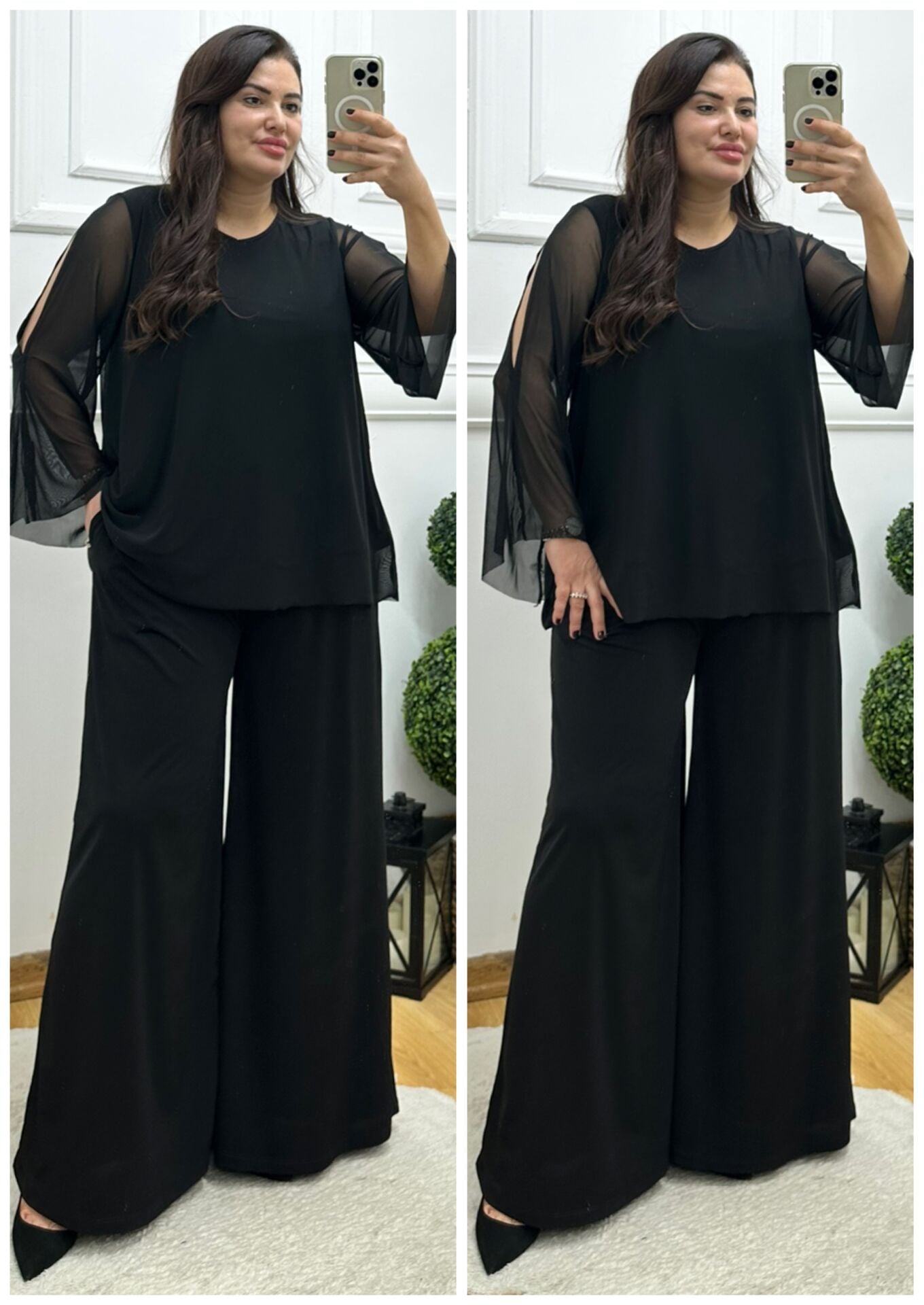 VL131-Siyah şifon detaylı ispanyol ikili takım