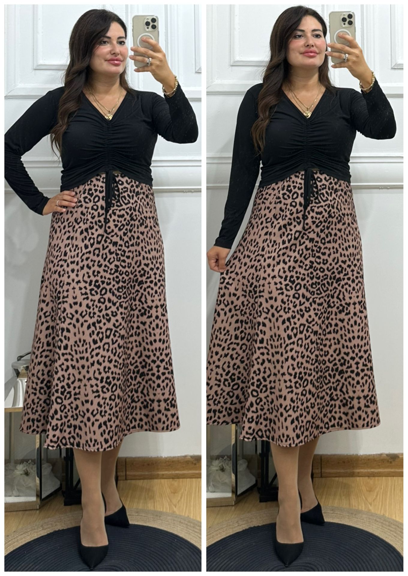 ZS030-Leopar desen tensel kumaş uzun etek