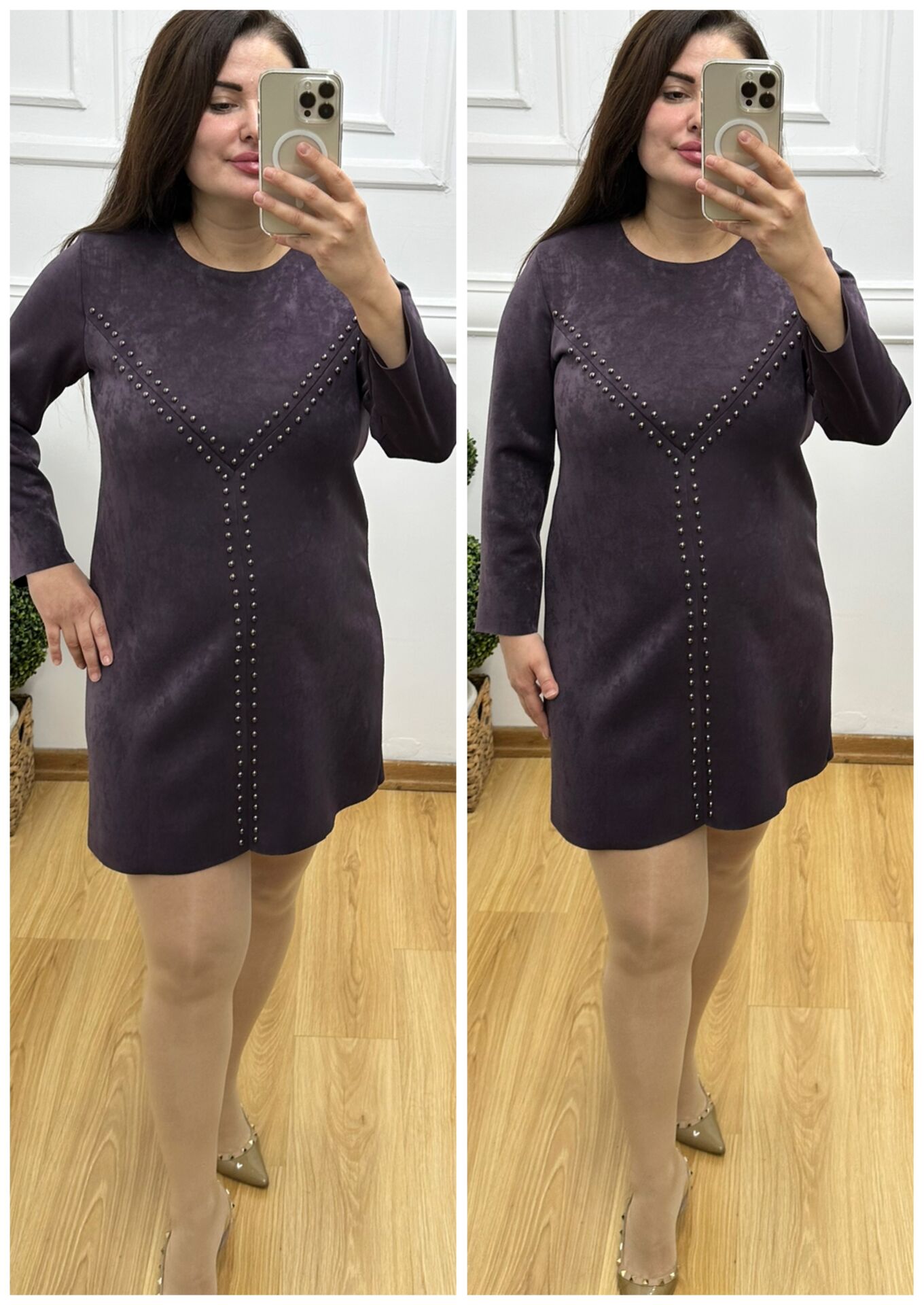 ZS124-Mürdüm nubuk süet elbise